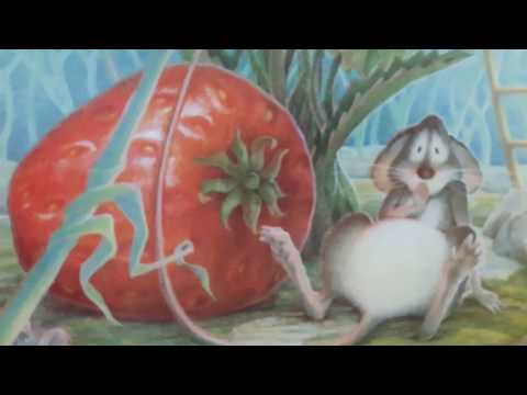 O ratinho, o morango vermelho maduro e o urso esfomeado